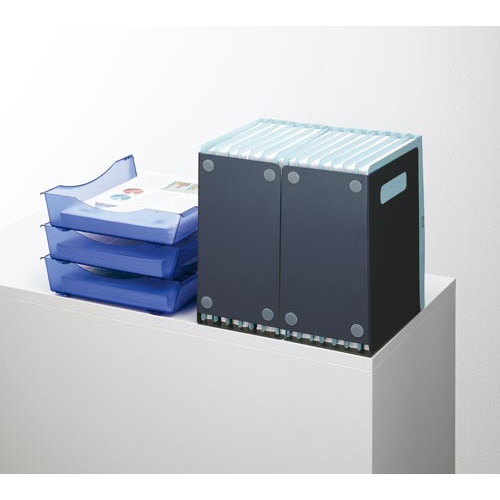 オフィスでよく使われるA4サイズの書類ぴったりのブックエンド!タテ型ファイル、ヨコ型ファイルにコレ1台で対応します。背面があるので、後ろにファイルが落ちにくい!持ち手がついて運びやすくなりました! |