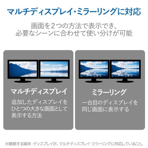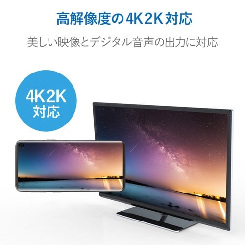 USBType−C端子を搭載したスマートフォンやタブレットの映像信号を変換し、HDMI入力端子を搭載したテレビ・ディスプレイ・プロジェクターなどに出力できるUSBType−C映像変換アダプタです。 |