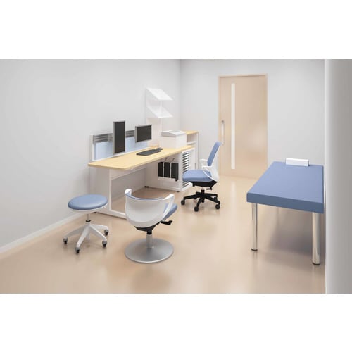 回転イス ココット 円盤脚 サポート型 マリン 丸椅子 本体ホワイトグレー/レザーライトマリン 幅500×奥行430×高さ570−660mm 1台 CR−CG542E1VZ62