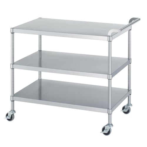 シンコー ステンレスワゴン(ベタ棚・枠無3段・75キャスター) M03−9060−U75 研究用 ワゴン ワゴン 1台 4962-2980