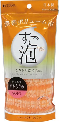 すご泡4 ナイロンタオル やわらかめオレンジ 約280×1000mm 1個 347051