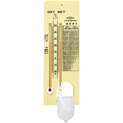 乾球と湿球の2本の温度計の温度差から百分率によって湿度を求めます。壁掛用。 |