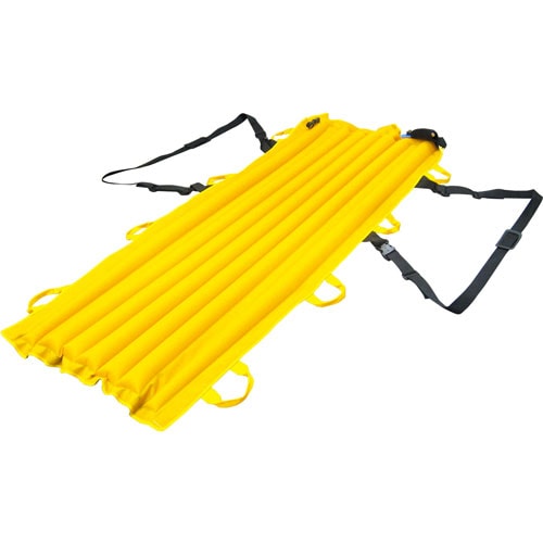 CO2炭酸ガスで3秒で膨張するエアバッグ式担架です。膨張させて担架・簡易ベッドとして、膨張させずにスライドシートとして使用可能。炭酸ガスボンベを交換すると何度でも使用できます。 |