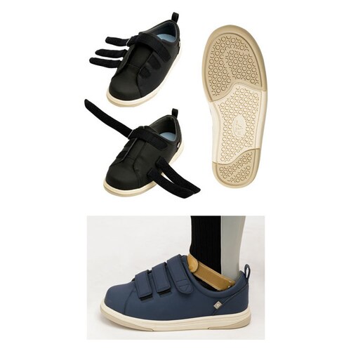 ・大きく開いて脱ぎ履きしやすい装具対応シューズ。