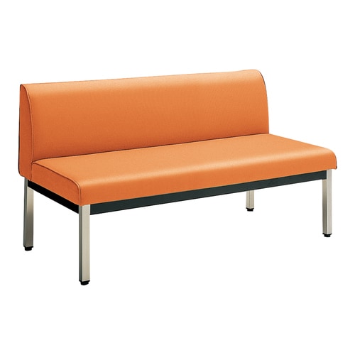 ロビーチェア 肘無角ステンレス脚背有 ベンチ レザーソフトタンジェリン 幅1200×奥行600×高さ670mm 1台 メーカー直送 ロビーベンチ 待合室ソファ CN−159VZ0D