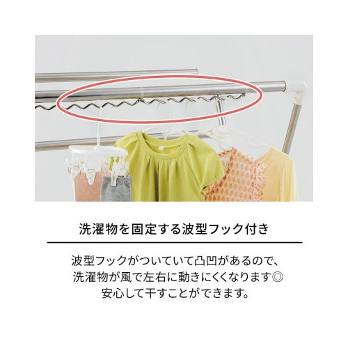 幅と高さのダブル伸縮ができる布団干しです。4枚まとめて干せます。衣類も干せるハンガーフック付きです。 |