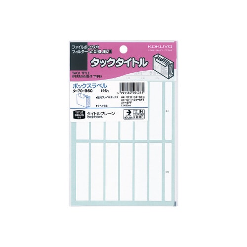 タックタイトルボックス用 無地 13×60mm ファイルボックス用 タイトルブレーン対応 1パック(144片入) タ−70−B60 タックラベル