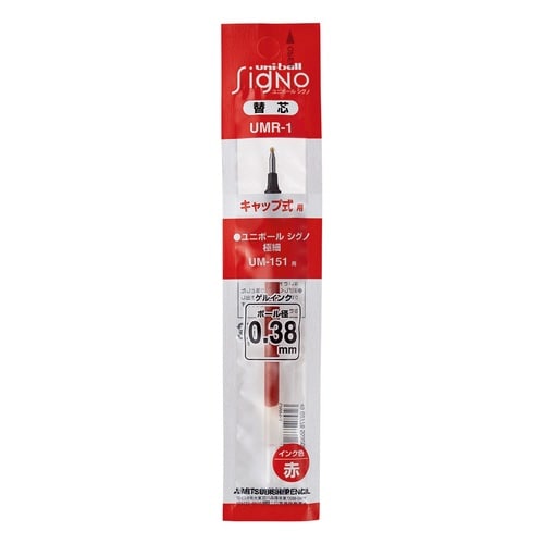 ボールペン替芯UMR−1 赤 インク色赤 119.0mm 1本 UMR1.15 ボールペン用替芯(三菱鉛筆)