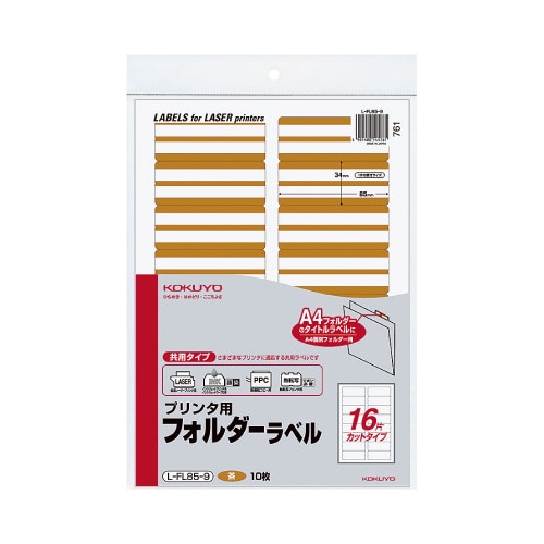 プリンタ用フォルダーラベルA4 16面 茶 1パック(10枚入) L−FL85−9 ラベルシール ラベル用紙(スタンダードタイプ)