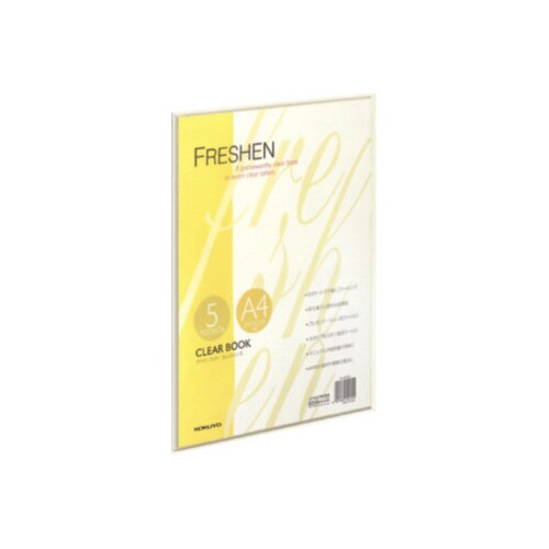 POPで爽やかな印象の透明カラーを採用したコクヨのクリヤーブック「フレッシェン」。薄いので持ち運びに便利。表紙が透明なので、提出ファイル用の見出し表紙として使えます。 |