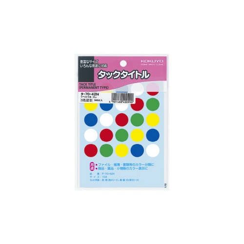 タックタイトル 直径15mm 595片入 5色セット 5色アソート 5色アソート(赤・青各4シート、緑・黄・白各3シート) 1パック タ−70−42N タックラベル