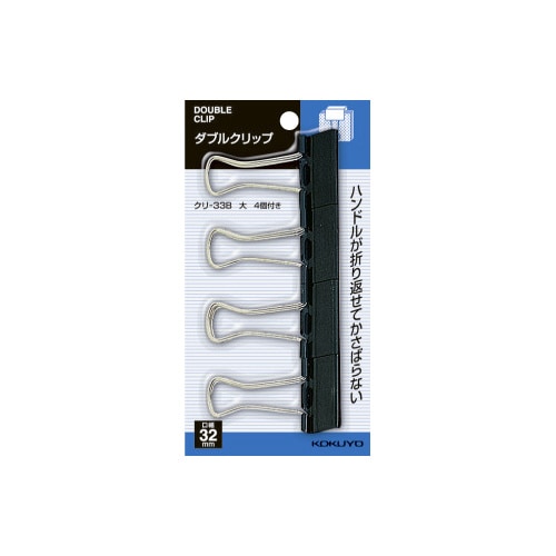 信頼のコクヨ製、ダブルクリップです。ハンドルが折り返せるのでかさばりません。 |