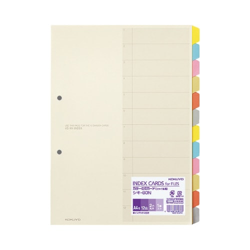 カラー仕切カード ファイル用A4タテ 2穴12山 12山 シキ−80NZ 1パック(1組入)