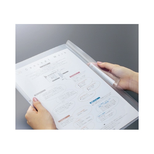 ファイルにとじたまま書類の出し入れができる、2穴あきのクリヤーホルダー。フラップが付いているから、取り出す際に書類がこぼれ落ちる心配がありません。 |