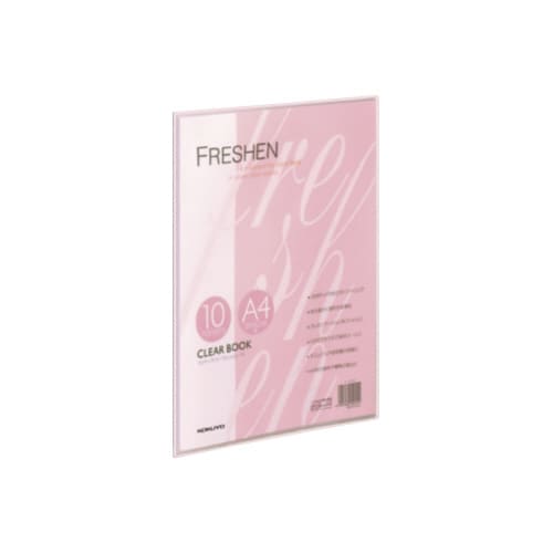 POPで爽やかな印象の透明カラーを採用したコクヨのクリヤーブック「フレッシェン」。薄いので持ち運びに便利。表紙が透明なので、提出ファイル用の見出し表紙として使えます。 |