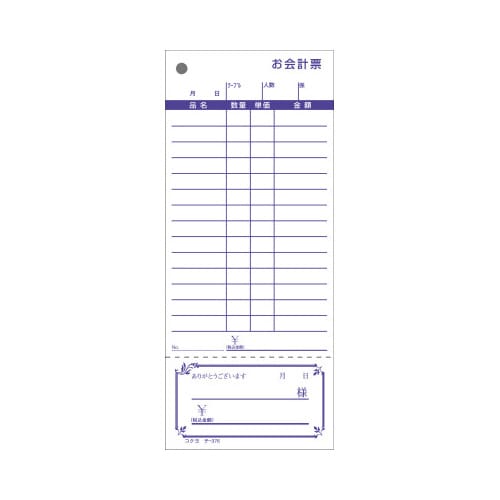 見やすく書きやすい、コクヨのお会計票。 |