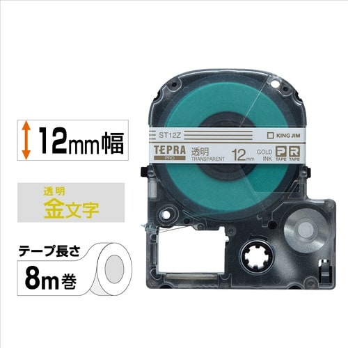 ST12Z「テプラ」PROテープカートリッジ TEPRA透明ラベル 金文字12mm幅8m巻 ST12Z テプラ(キングジム)用 ラベルテープ/シール 1個