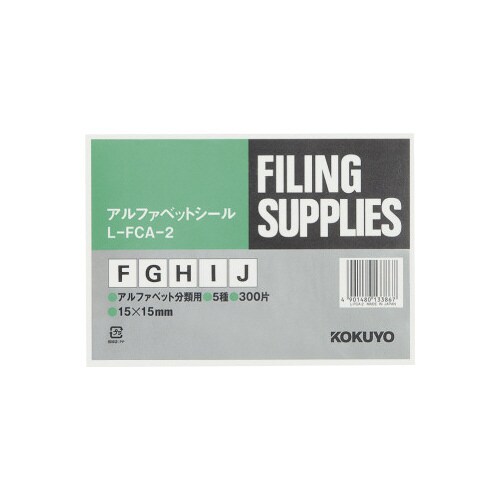 アルファベットシール FからJ 5種各60片 15×15mm(1片) ファイルボックス L−FCA−2 1パック(60片入×5)