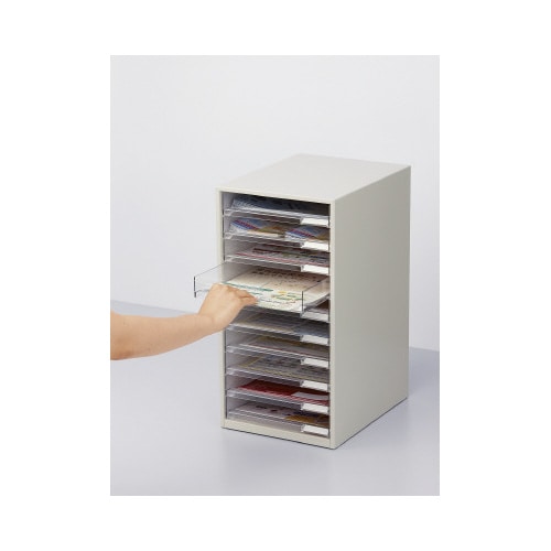 引き出しを開けずに中の書類を出し入れできる。よく使う書類の管理に最適です。 |