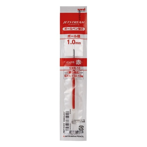 ジェットストリーム単色用替芯1.0mm 赤 インク色赤 111.5mm 1箱(10本入) SXR10.15×10 ボールペン用替芯(三菱鉛筆)