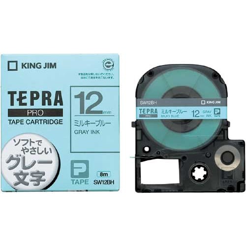SW12BH「テプラ」PROテープカートリッジ TEPRAカラーラベル・ソフト ミルキーブルー・グレー文字12mm幅8m巻 SW12BH テプラ(キングジム)用 ラベルテープ/シール 1個