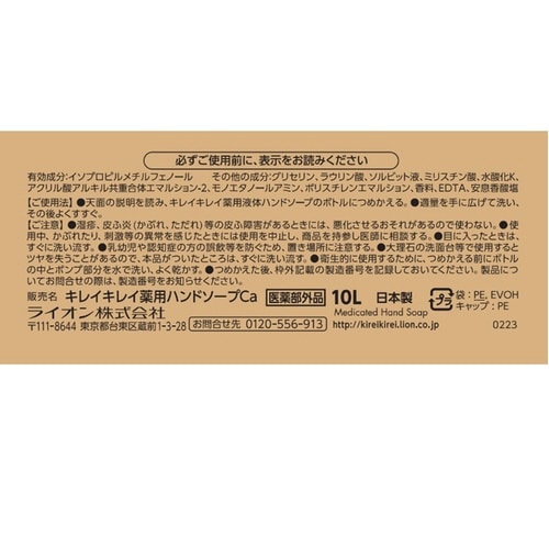 キレイキレイ薬用液体ハンドソープ 業務用10L バッグインボックス【液体タイプ】 ライオン 022527 ハンドソープ(液体タイプ) 1箱