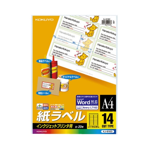 インクジェットラベル エイブリィ 14面 A4 1冊(20枚入) KJ−8163 ラベルシール ラベル用紙(スタンダードタイプ)