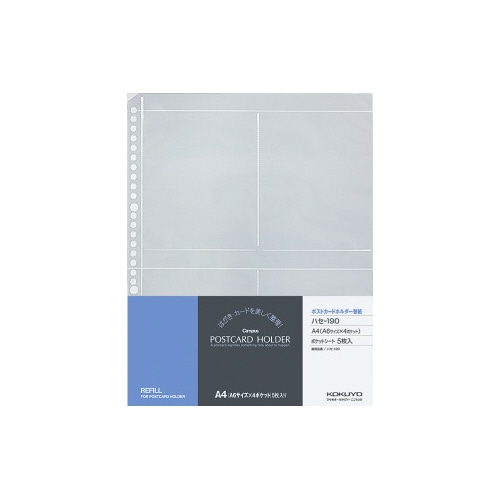 ポストカードホルダー替紙 A4タテ 30穴 ハセ−190 1パック(5枚入)