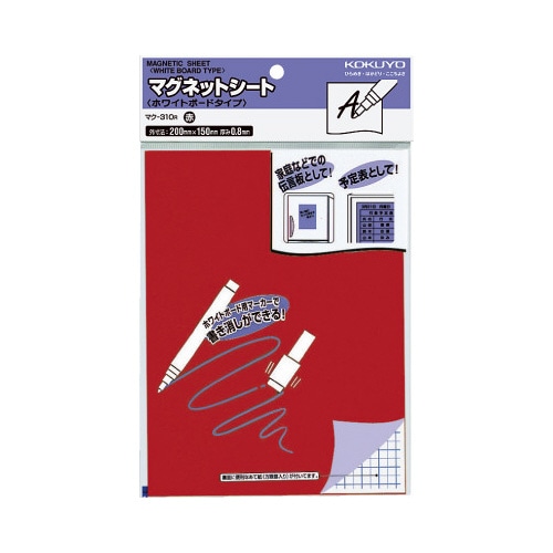 マグネットシート ホワイトボードタイプ 赤 1枚 マク−310R
