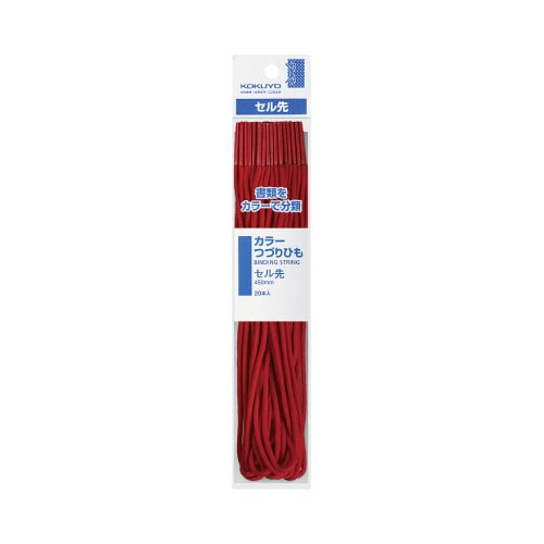カラーつづりひもセル先 長さ450mm 赤 赤 1パック(20本入) ツ−B141R 綴紐(つづりひも)