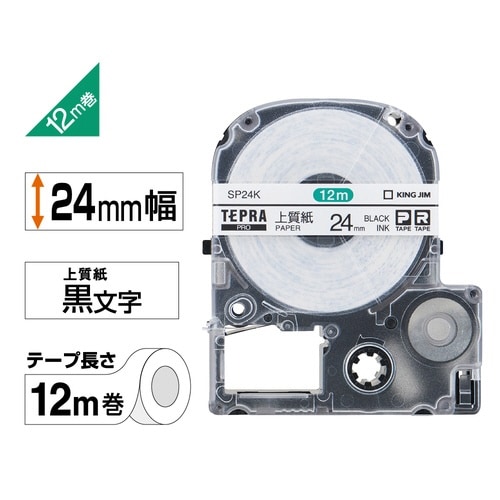 SP24K「テプラ」PROテープカートリッジ TEPRA上質紙ラベル 白・黒文字24mm幅12m巻 SP24K テプラ(キングジム)用 ラベルテープ/シール 1個