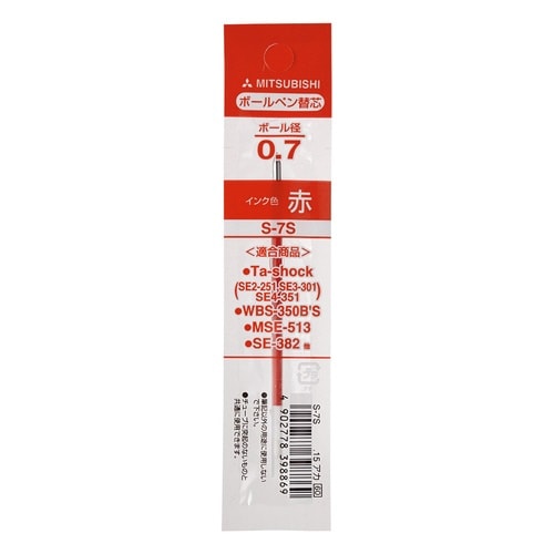 ボールペン替芯S−7S 赤 87.7mm 1箱(10本入) S7S.15×10 ボールペン用替芯(三菱鉛筆)