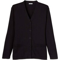 ストレートシルエットで、適度なVゾーンの5つボタン。座ったときも邪魔にならない着丈、使いやすいアウトポケットなど、機能性を考慮したデザインです。素材にはアクリル70%・毛30%の毛玉になりにくい糸を使用し、静電気の発生を防ぐ後加工を施しました。 |