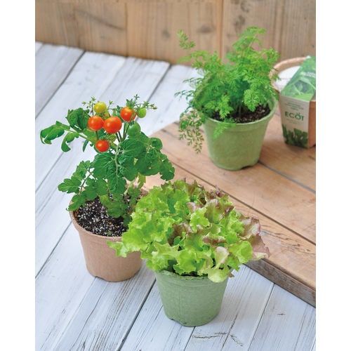 地球にやさしい国産エコポットで育てよう。エコなポット「エコット」でハーブや野菜を育てる栽培セットです。Mサイズでは野菜がしっかりと育ちます。エコットで環境への配慮の小さな一歩を踏み出してみませんか? |