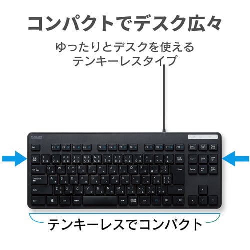 キー入力がはかどる、サクサク軽い打ち心地。PCに挿すだけの簡単接続で、すぐに使用することができる有線薄型コンパクトキーボード。 |