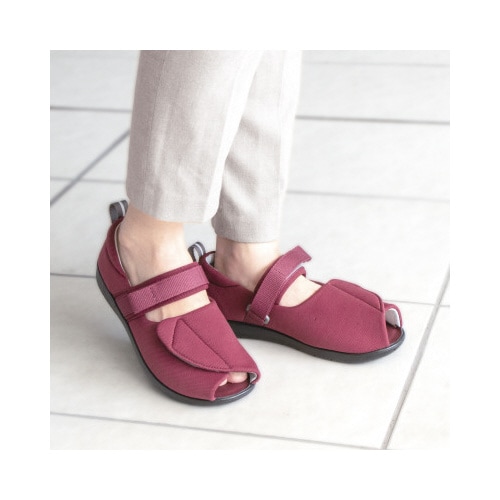 PH転びにくいシューズ つま先なし Mワイン 24.0cmから25.0cm 1箱(1足入) 397410 介護向けシューズ(屋外兼用)