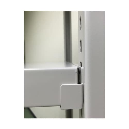 ボルトレスですから、組立・分解が簡単で時間がかかりません。支柱は、ねじれに強いC型形状です。段替えが簡単です。棚板は25mmピッチで段替えが可能です。収納物に合わせて移動できます。 |