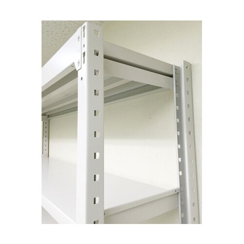 ボルトレスですから、組立・分解が簡単で時間がかかりません。ねじれに強いです。支柱は、ねじれに強いC型形状です。段替えが簡単です。棚板は50mmピッチで段替えが可能です。収納物に合わせて移動できます。 |
