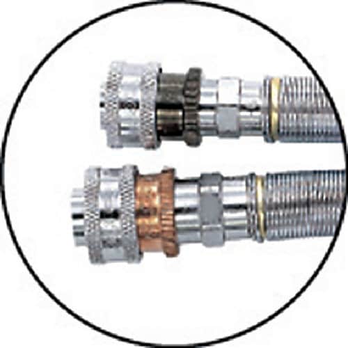 OKコック付はワンタッチ脱着カプラ付です。酸素ガス・アセチレンガス専用ホースです。内径5mmのため、扱いが容易です。
