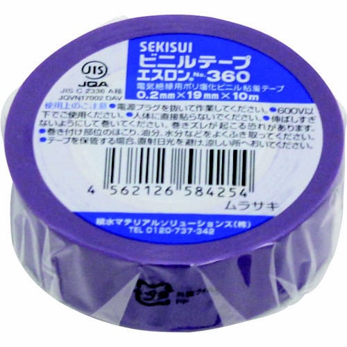 セキスイ エスロンテープ #360 19×10 紫 V360E1N ビニールテープ 1巻 ※3巻以上から注文可能(販売価格は1巻単位の価格) 7027-5919