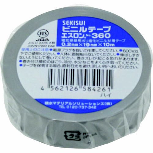 セキスイ エスロンテープ #360 19×10 灰 V360H1N ビニールテープ 1巻 7027-5926