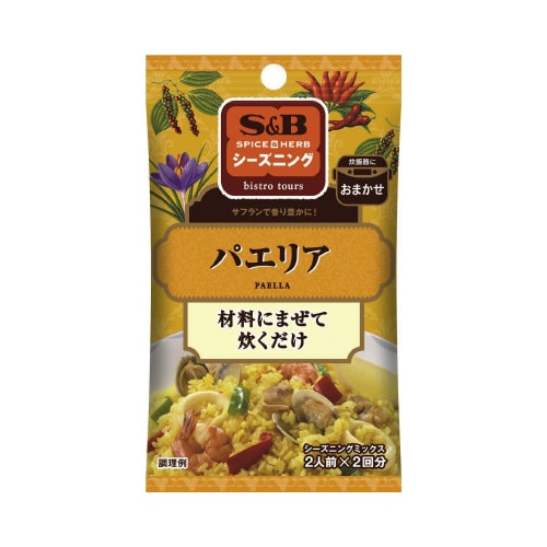 簡単調理でステキなメニューができる、SPICE&HERBシーズニング。材料と一緒に炊くだけで、スペインの人気メニュー、パエリアが作れます。サフランの鮮やかな彩りと豊かな香りが特徴です。 |