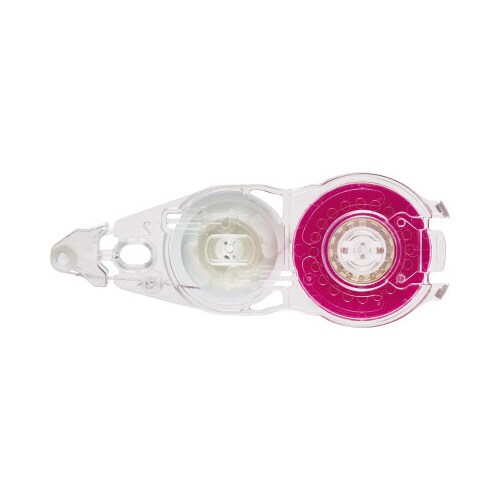 業界最小クラスのサイズで大容量12m巻のつめ替え式テープのり。のり面はピンク色のハート柄です。独自機構搭載でペンケースの中でキャップが開かず持ち運びに最適。詰め替え用のリフィルです。 |