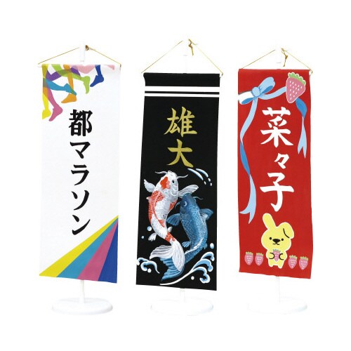 レタリングの授業に最適! 生徒全員の作品をならべて展示すると壮観です絵を描いて旗にしよう! |