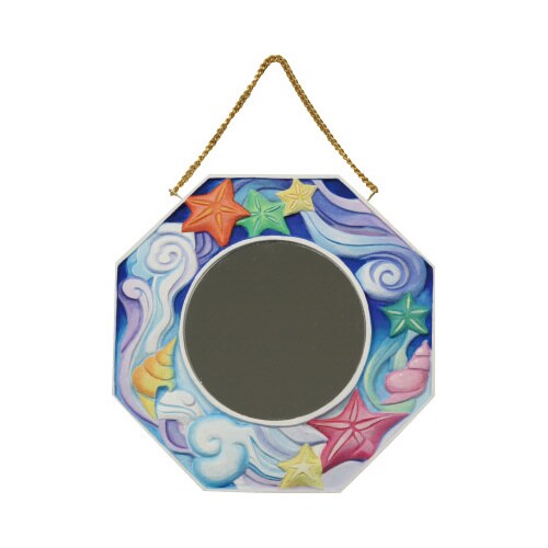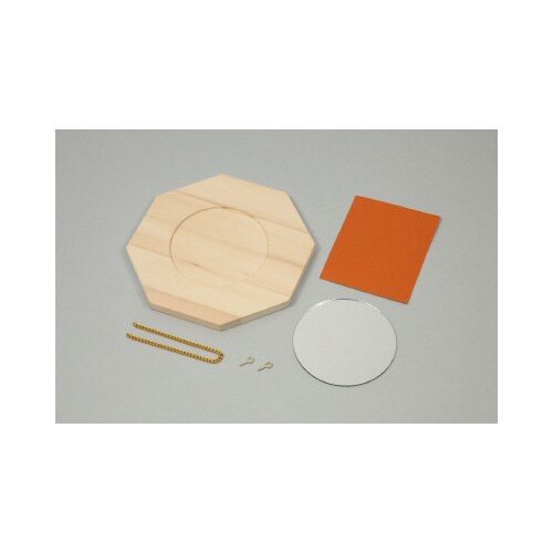 風水で幸運を招く形として知られる八角形の木彫鏡額です。 |