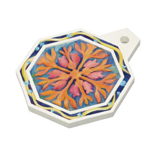 幸運を招く形として知られる、八角形の木彫なべしきです。 |