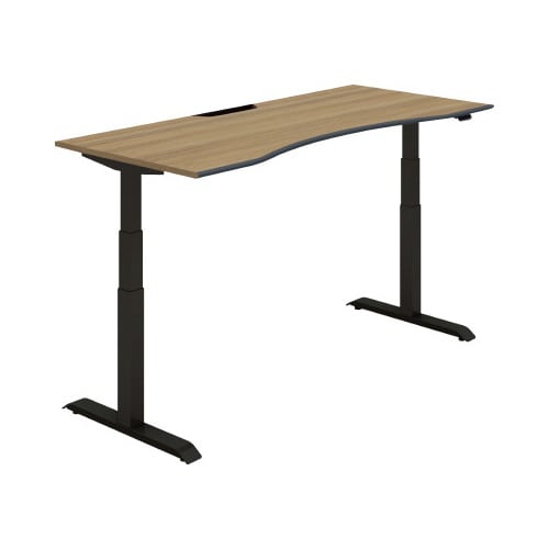ワーカーに寄り添い、空間に映える。電動で昇降するデスク。時には立ちあがってデスクに向かってみる。視点や姿勢を変えて、心と身体を少し刺激してみる。そんなモードチェンジが自由にできる昇降デスクです |