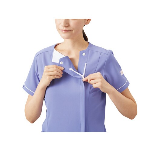 年代を問わず女性に高い人気を誇る、ワコールHIコレクション。顔まわりに白いアクセントを効かせ、顔まわりを明るく演出するジップタイプのスクラブは、清楚で華のあるデザインに仕上がりました。 |