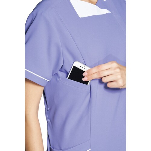 年代を問わず女性に高い人気を誇る、ワコールHIコレクション。顔まわりに白いアクセントを効かせ、顔まわりを明るく演出するジップタイプのスクラブは、清楚で華のあるデザインに仕上がりました。 |