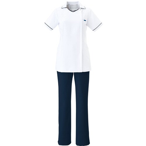 インナーがひびきにくい、高い防透性と、ほどよい伸縮性を兼ね備えた素材で作られた脇ゴム仕様の女性用ストレートパンツ。白衣でもチュニックでもスクラブでもコーディネートできる人気のあるパンツの一つです。 |